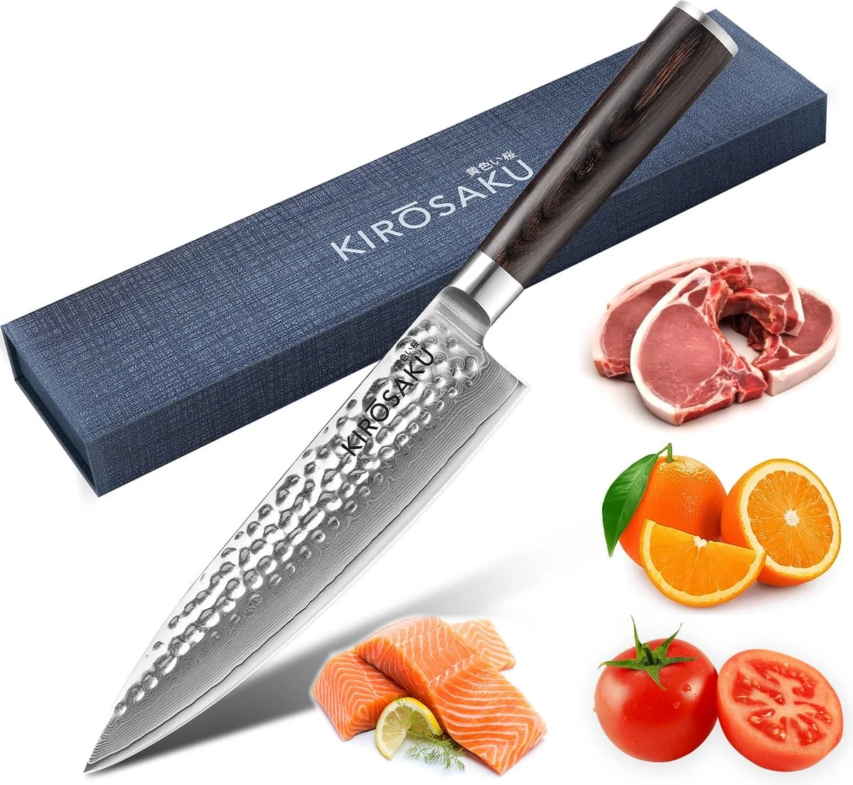 Kirosaku Premium Damascus Keukenmes – 20cm Lemmet Lengte Keukenmes – Damascus Mes Keukenmes Gemaakt Van 67 Lagen Japans Damascus Staal, Origineel Scherp Koksmes Professioneel Mes – Pakka Houten Handvat