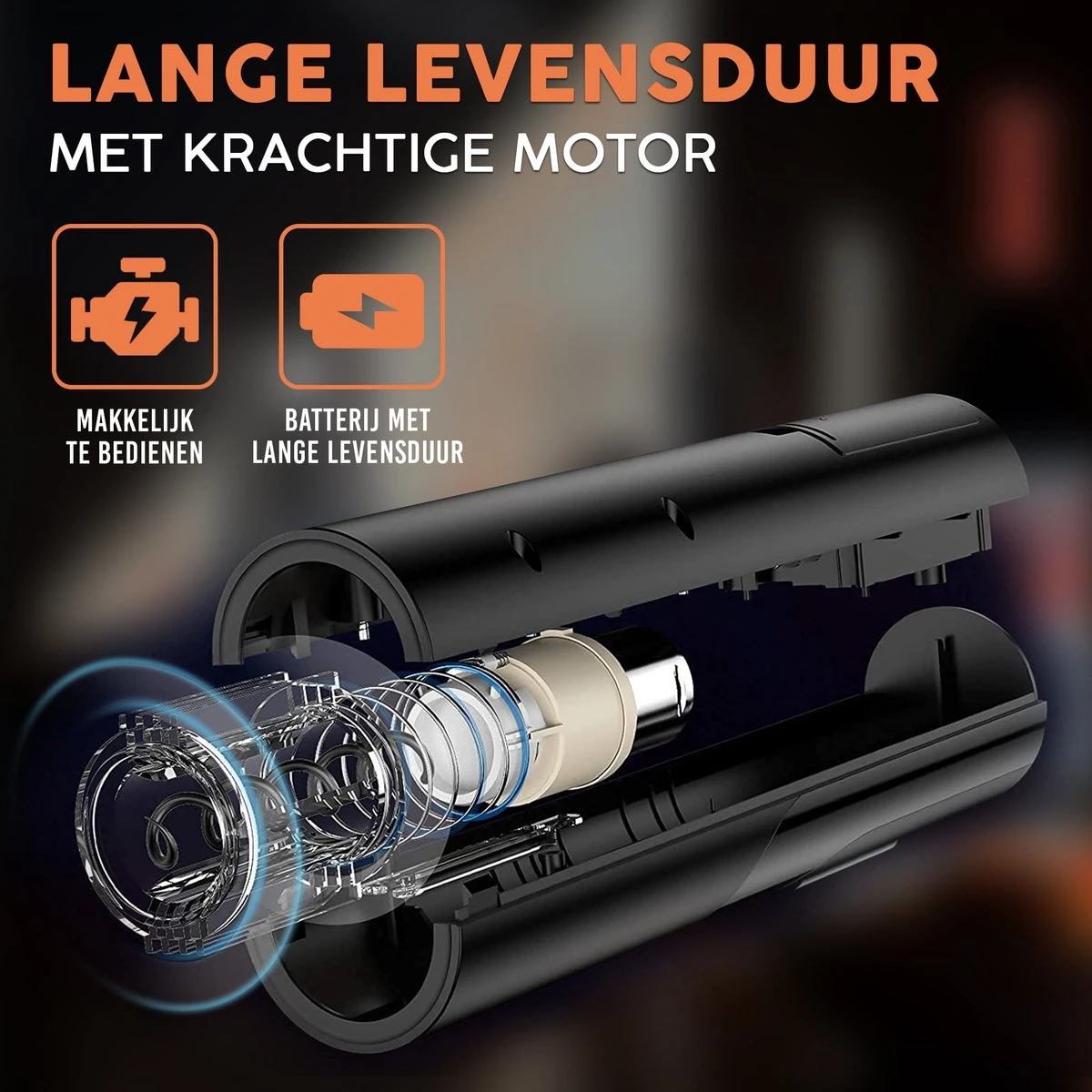 - Door de LED verlichting is de wijnopener ook in het donker te gebruiken