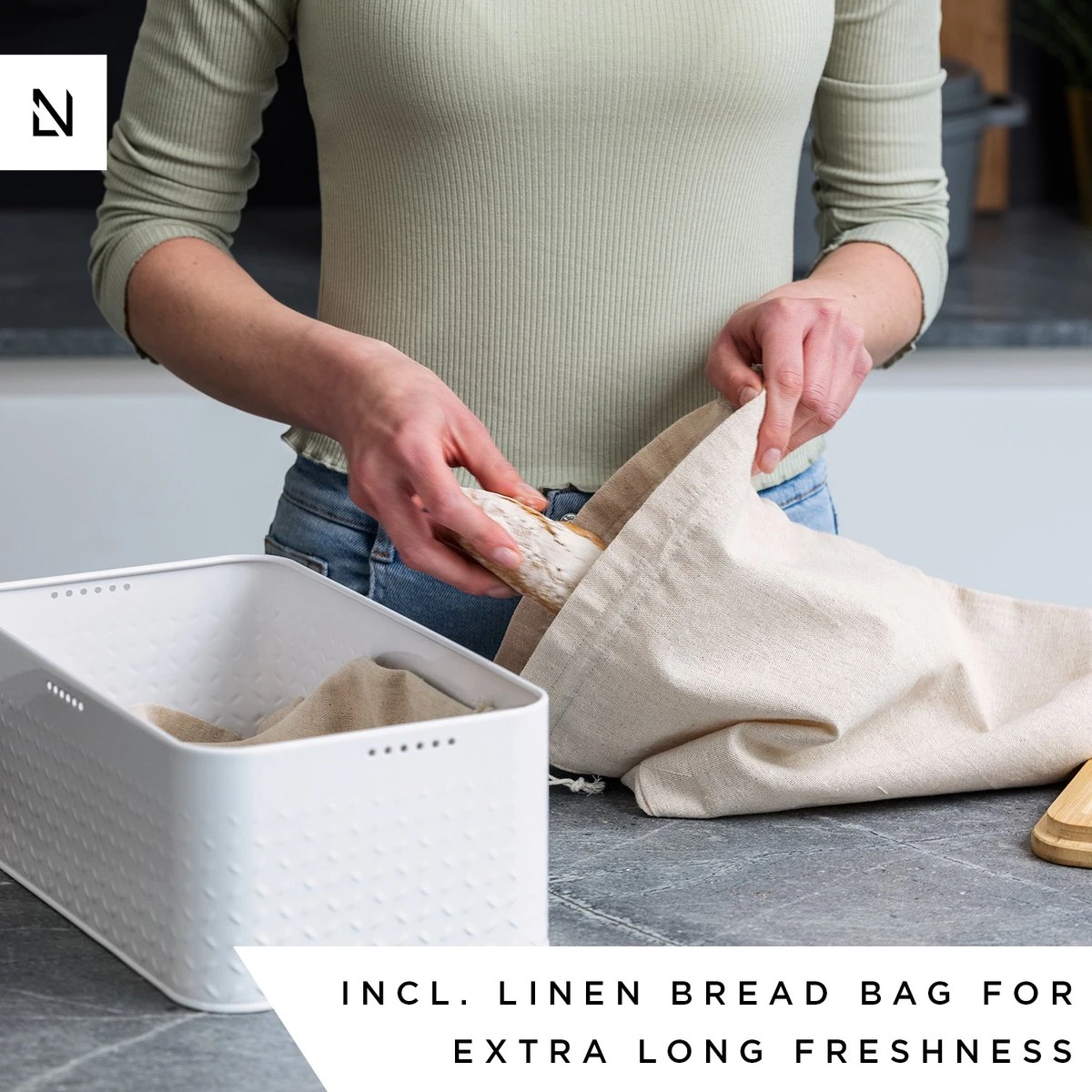 De broodtrommel heeft speciale ventilatiegaten aan drie zijden die zorgen voor een optimale luchtcirculatie. De meegeleverde linnen broodzak houdt gebak & brood langer vers, zonder vocht & schimmel.