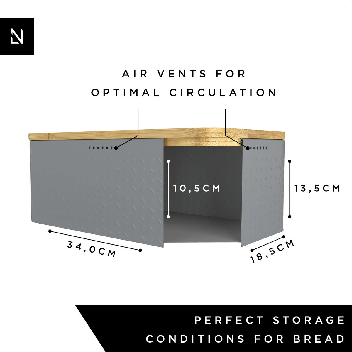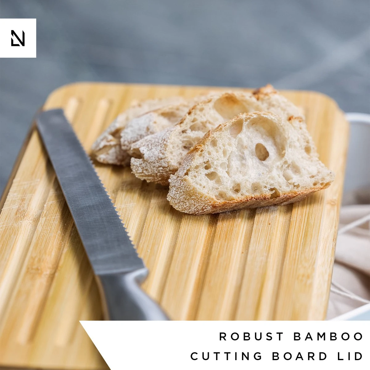 De extra stevige bamboe deksel zorgt voor optimale bewaarcondities en is tevens geschikt als hoogwaardige broodsnijplank. De opbergdoos biedt voldoende ruimte voor meerdere stukken brood en gebak.