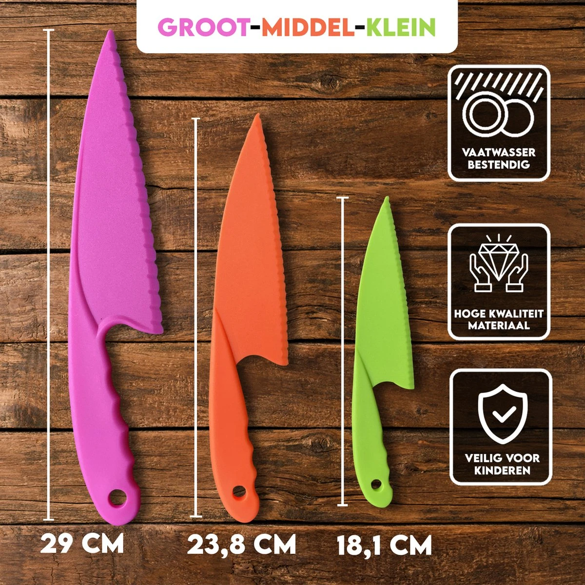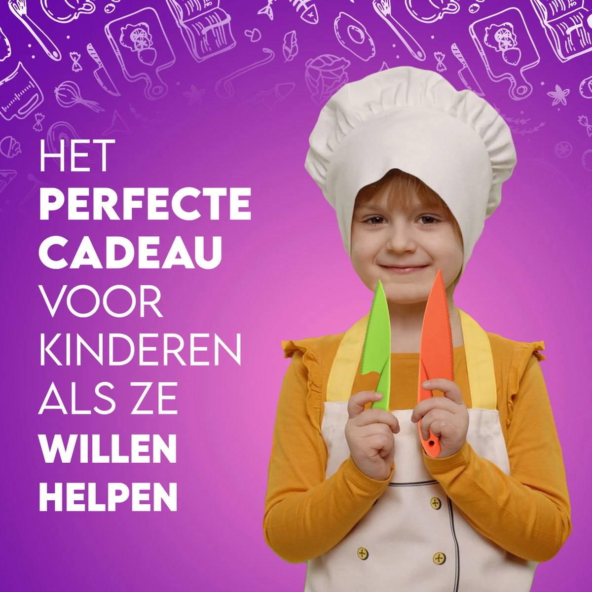 Geniet samen van de momenten en zorg ervoor dat jouw kind een echte chef wordt! Door de afgeronde kartelranden worden snijwonden voorkomen.