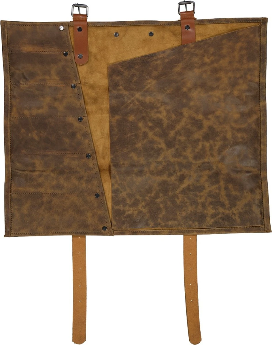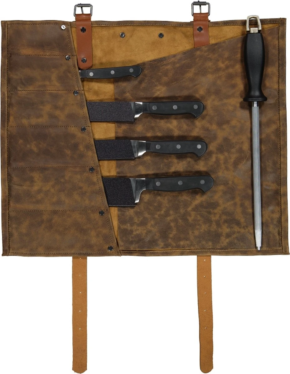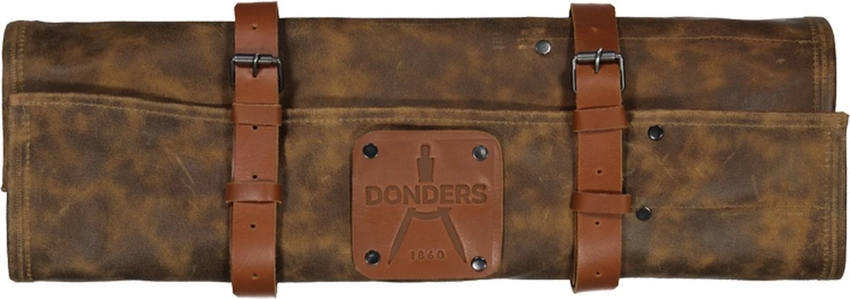 Deze stoere, leren messenmap van Donders1860 is voorzien van 6 opbergvakken voor het veilig opbergen en meenemen van je messen.