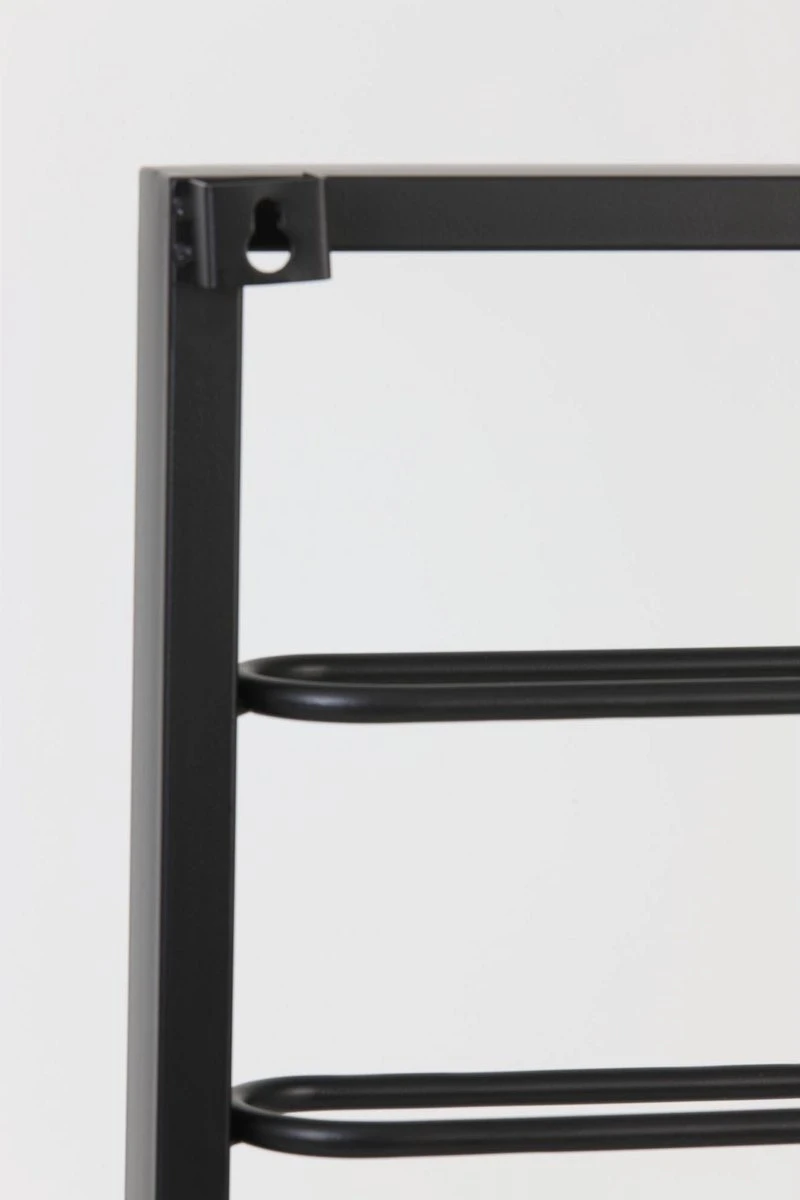 Verticaal zwart wijnrek voor aan de wand.