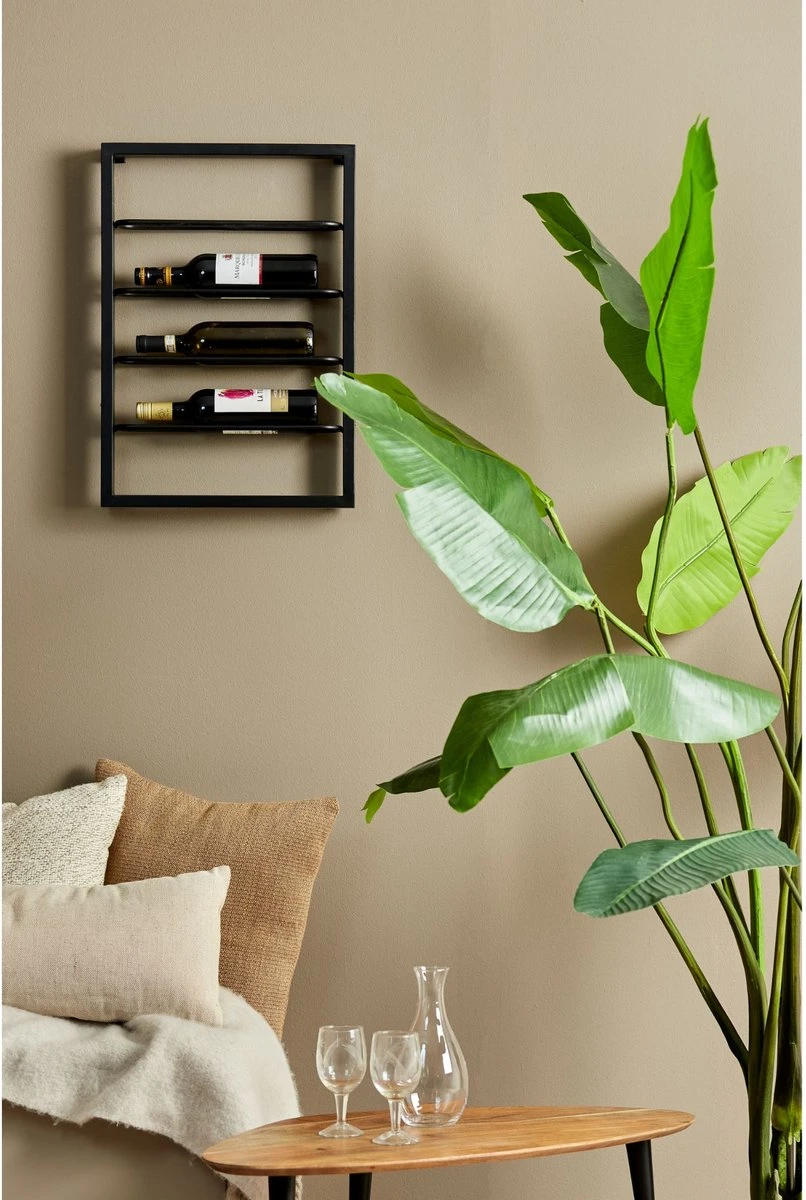 Materiaal: Metaal Kleur: Mat Zwart Afmeting: 42x7x60 cm Voor gemonteerd: Ja Geschikt voor: 4 wijnflessenDit product is van het merk Light & Living. Light & Living is een toonaangevend merk in verlichting, woonaccessoires en klein meubilair. Dit Nederlandse merk staat garant voor een snel wisselende en brede collectie in de laatste trends en de juiste kleuren voor een goede prijs kwaliteit verhouding.