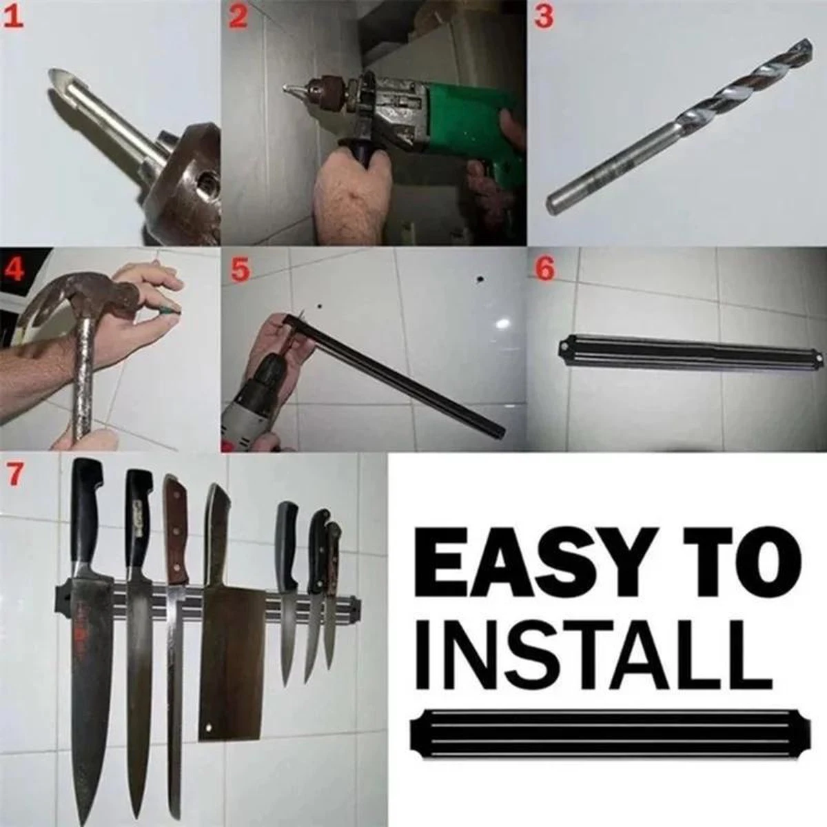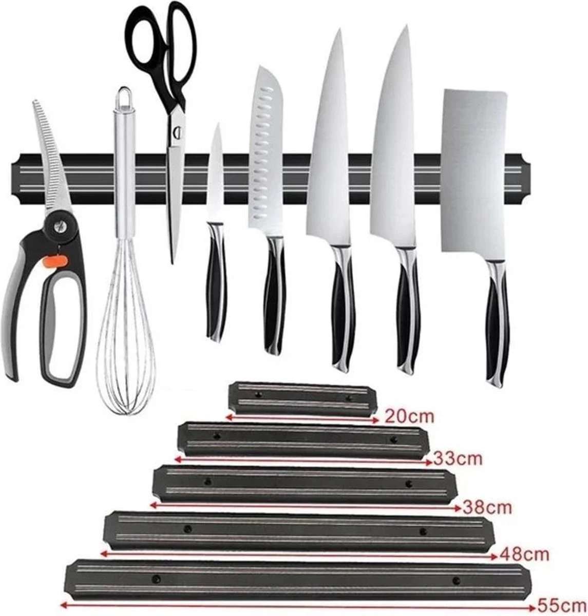 Deze magnetische messenhouder is ideaal om al je messen makkelijk op te bergen en snel bij de hand te hebben. De strip is 33 cm lang en geschikt voor circa 4-8 messen. Niet alleen is dit hygiënischer, het houdt de messen ook scherper. Strak afgewerkt en past in iedere keuken.