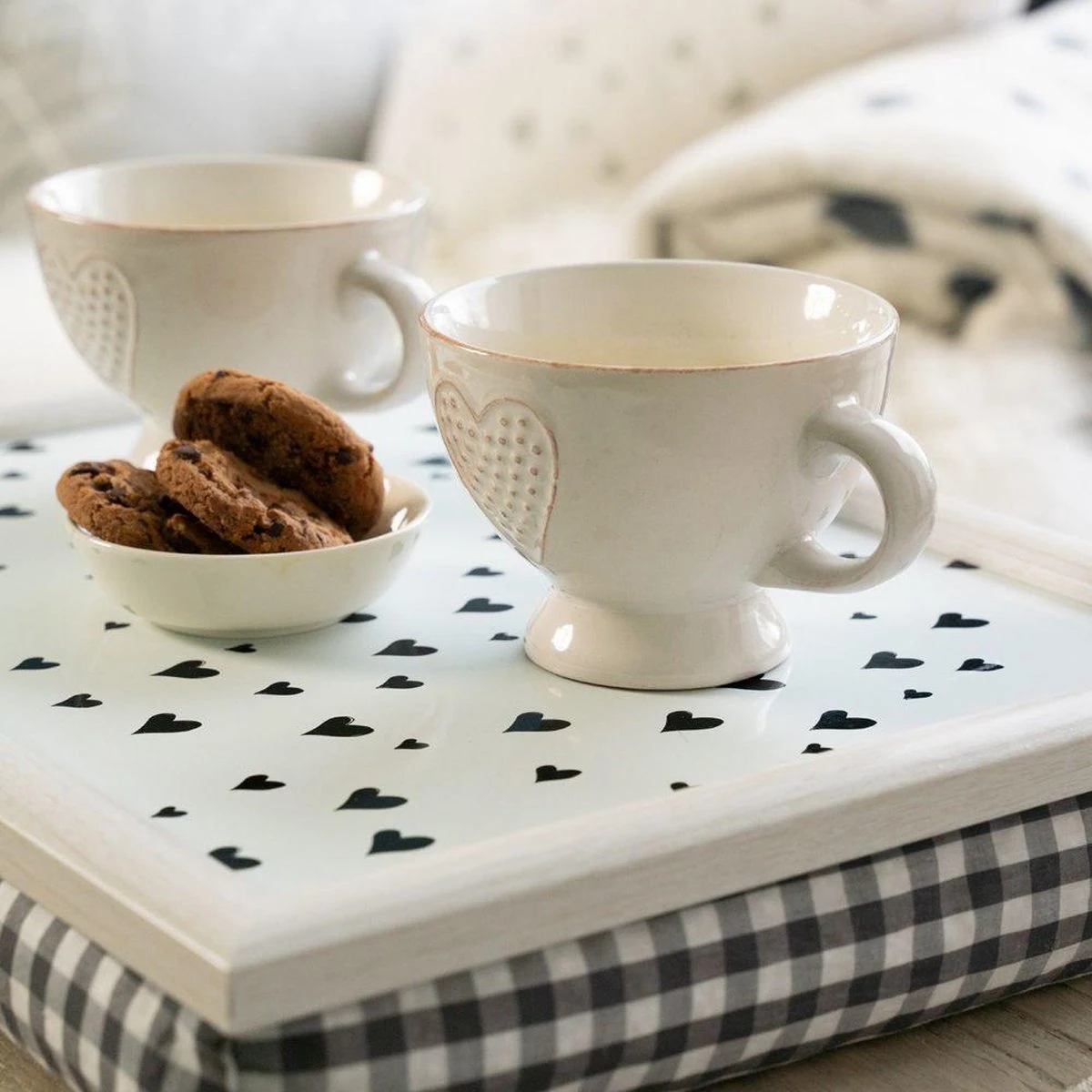 Mars&More – Schootkussen/laptray Hartjes Print 43 X 33 Cm – Schoottafel – Dienblad Voor Op Schoot Zwart Witte Hartjesprint