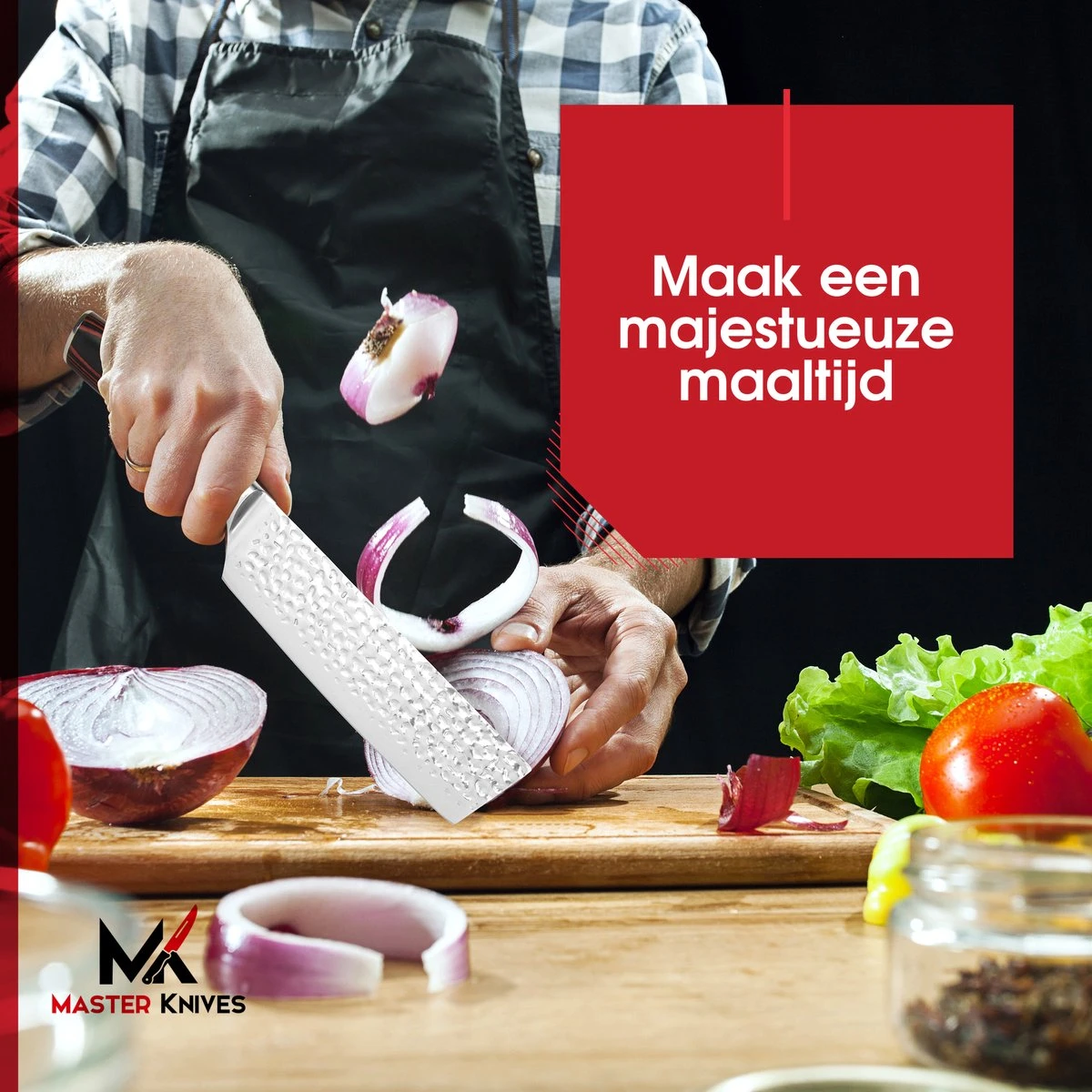Dit koksmes kan overal voor worden gebruikt. Ga je vlees, kip of vis snijden, of ben je meer van vegetarisch eten? Het Japanse Koksmes van Master Knives kan voor elk gerecht worden ingezet. Zelfs het fijnsnijden van kruiden is zo gepiept.
