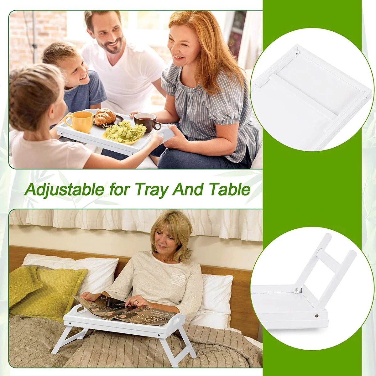 - Ontbijttafel voor kinderen: dit kleine bamboe ontbijtdienblad is een leuk cadeau voor je kinderen als schildertafel, boeken lezen, surfen met tablet, enz. Dit beddienblad met inklapbare poten en handgrepen kan door kinderen, paren in de keuken, slaapkamer, bed en bank worden gebruikt.