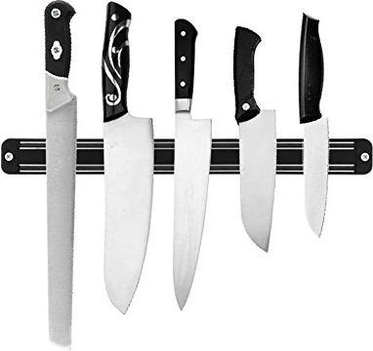 Deze magnetische messenhouder is ideaal om al je messen makkelijk op te bergen en snel bij de hand te hebben. De strip is 33 cm lang en geschikt voor circa 4-8 messen. Niet alleen is dit hygiënischer, het houdt de messen ook scherper. Strak afgewerkt en past in iedere keuken.