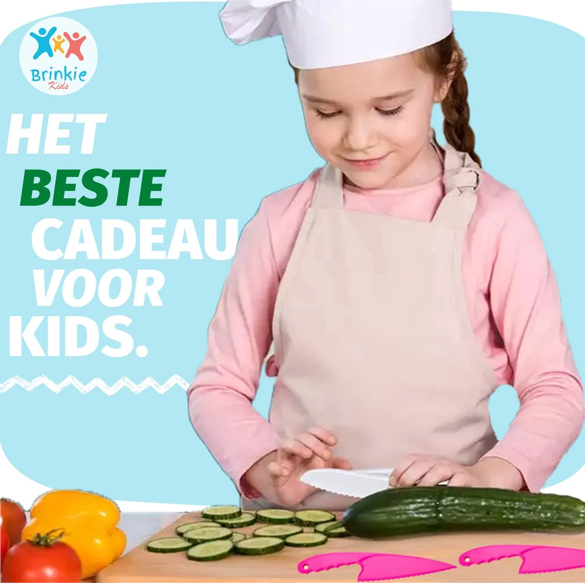 Kinderen kunnen meehelpen in de keuken! Het is altijd leuk als je kids je kunnen helpen met koken. Daarentegen moet dit wel veilig gebeuren. Deze kindermessenset helpt daarbij! De set bestaat uit 5 kindermessen en zijn gemaakt van kunststof. De randen zijn optimaal afgewerkt om een veilige snij beleving te garanderen.