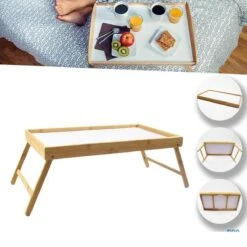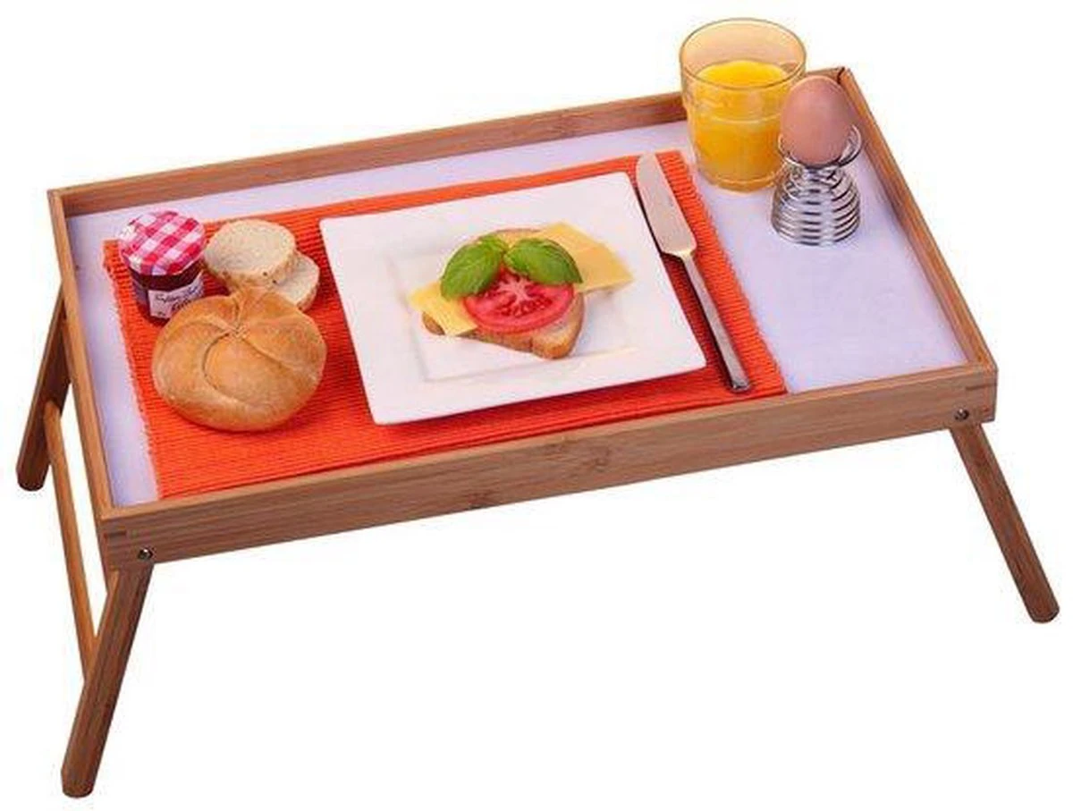 Merkloos Ontbijt Op Bed Dienblad – Inklapbaar Dienblad Op Pootjes – Rechthoek Schoot Beddienblad – Bamboe Hout