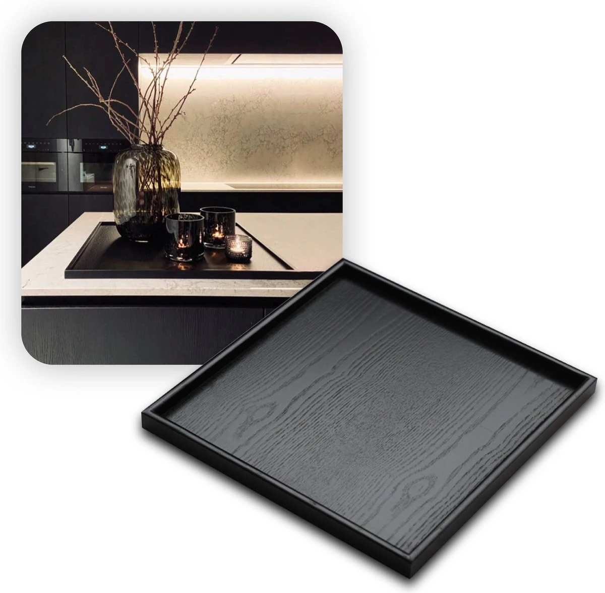 MIRO Houten Dienblad Vierkant – Decoratieve Dienbladen – Serveerblad – Sierblad – 36 X 36 CM – Zwart