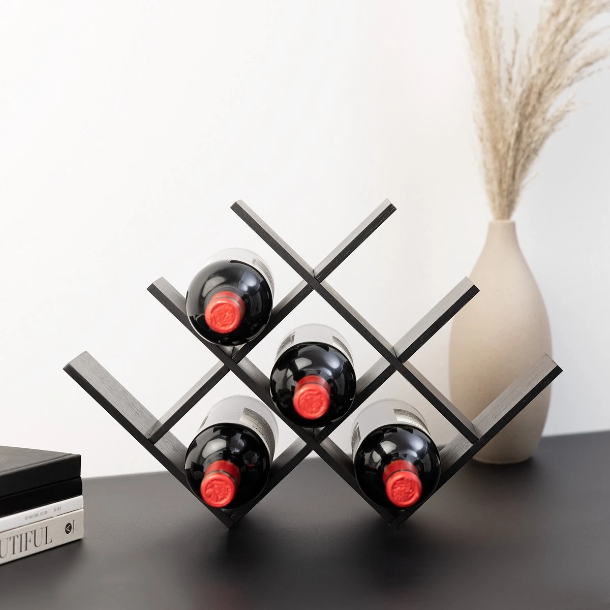 - COMPACT: Door het compacte ontwerp kun je de wijnflessen opbergen zonder dat het al te veel ruimte in beslag neemt. Gebruik het rek bijvoorbeeld om je wijn op het aanrecht of in schappen te presenteren.