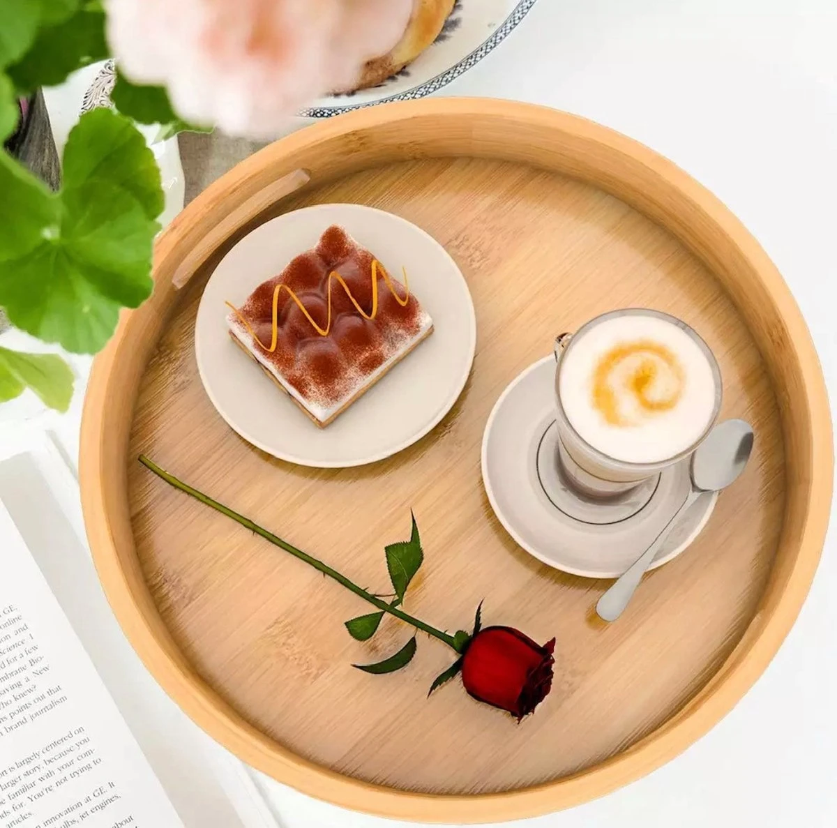 Dit bamboe houten ronde dienblad is erg makkelijk te dragen dankzij de 2 handvaten. Of u kunt deze tevens gebruiken in de woonamer om bijvoorbeeld decoratie op te zetten.