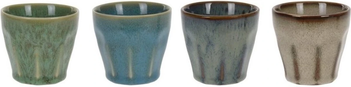 Deze espressokopjes van Orange85 komen in een set van 4. De espressokopjes zijn gemaakt van porselein. De kopjes hebben elk een andere blauwe of grijze kleur. De inhoud van een kopje is 90ml. Dit maakt het kopje geschikt voor een lekkere (dubbele) espresso. Deze kopjes zijn stapelbaar. De kopjes zijn geschikt voor in de vaatwasser.