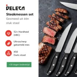 Deleca 6x Steakmessen – Vaatwasserbestendig – Tafelmessen – Messenset – Messen – Zwart / RVS – 22 Cm