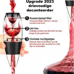 Olvy Wijn Decanteerder – Wijn Beluchter – Incl. Zeef En Standaard – 3 Voudige Beluchting