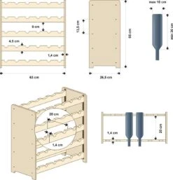 Wijnrek -Hout Wijnrek -Bottle Rack- 86×53,5×25 Cm (LxBxD) – Hout – 30 Flessen Flessenrek Modulair En Stapelbaar – Flessenhouder Staand