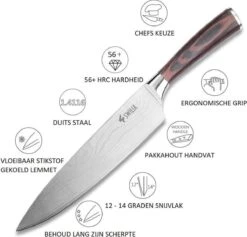Swilix Professioneel Koksmes 20 CM, Inclusief Messenslijper, Mes- En Vingerbeschermer, Duurzaam En Vlijmscherp – Universeel RVS Keukenmes