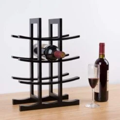 Het wijnrek is gemaakt van bamboe en is verkrijgbaar in de kleur zwart.