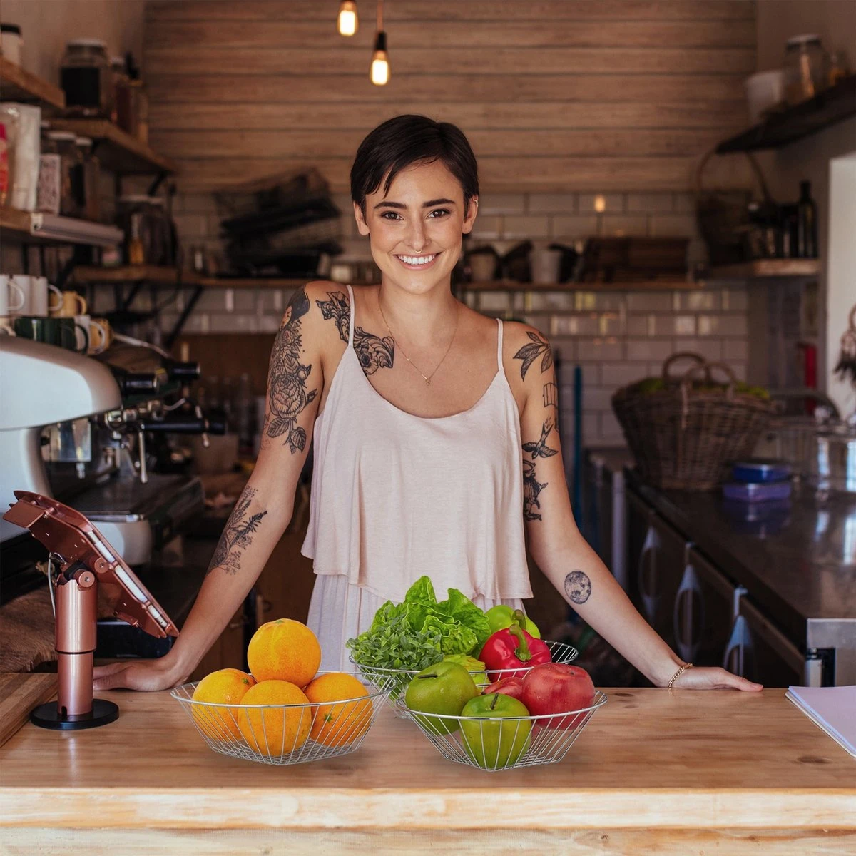 Fruit en groente horen bij een gezonde voeding – dankzij de hangende etagère voor fruit hangen vitaminebommen zoals appels, perziken of mandarijnen vanaf nu af aan altijd binnen handbereik. Vooral in kleine keukens maak je met de hangende etagère met 3 etages optimaal gebruik van de ruimte. De fruitmanden vormen een harmonisch trio maar zijn ook los van elkaar te gebruiken. Hiervoor hoef je slechts de kettingen eraf te halen. Omdat de draadmanden van verschillende groottes zijn, kun je ze goed in elkaar stapelen.