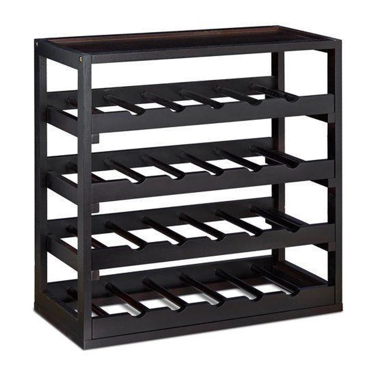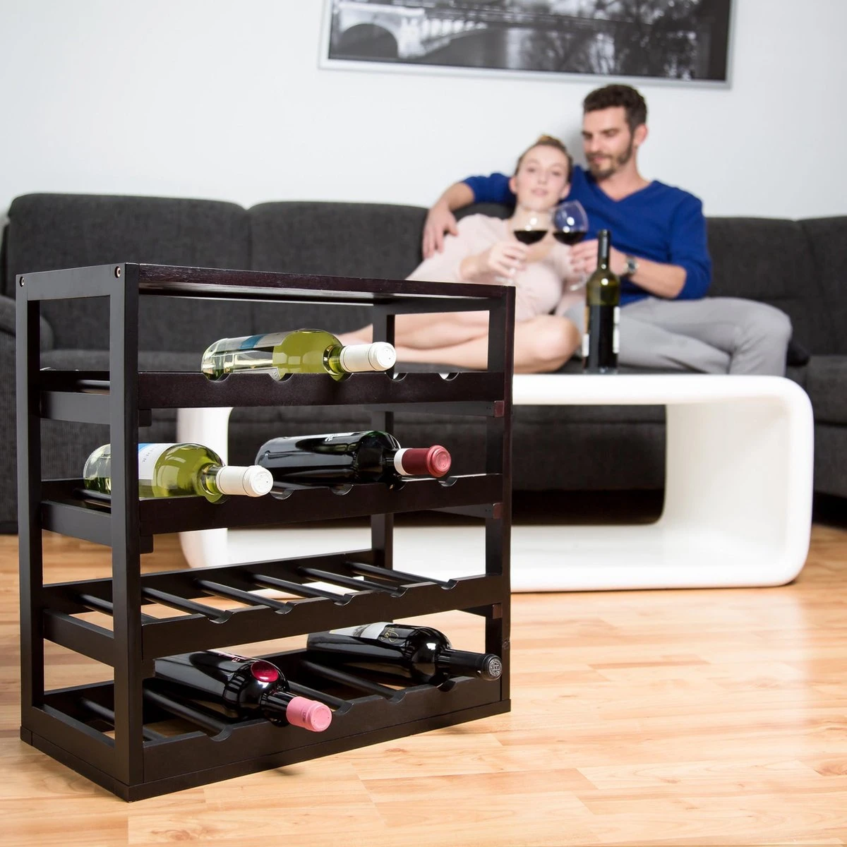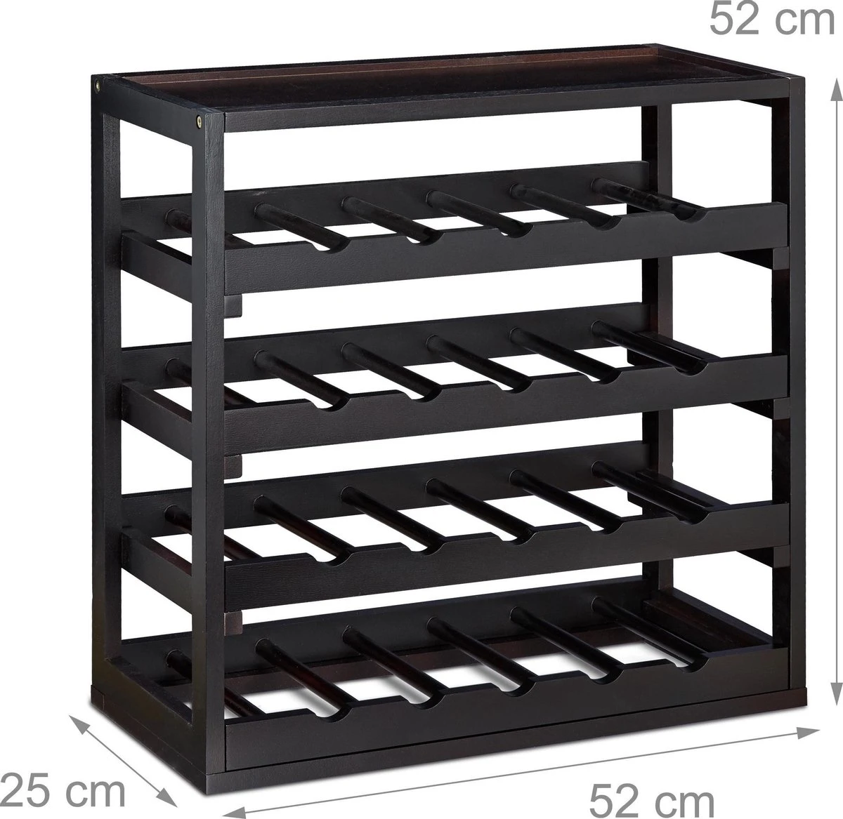 Dit hoogwaardige wijnrek gemaakt van hout in de kleur zwart is geschikt om 20 flessen wijn op te bergen. Op 4 etages heeft hij per etage ruimte voor 5 flessen. Het bovenste plateau is geschikt om glazen, karaffen, geopende wijnen of andere voorwerpen op te plaatsen.
