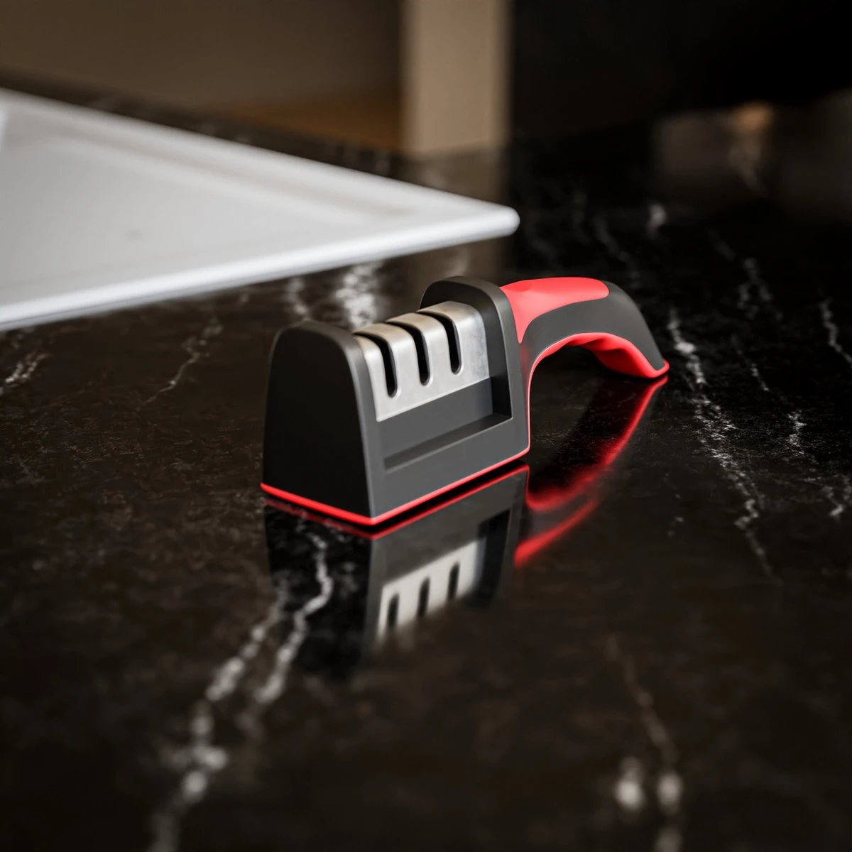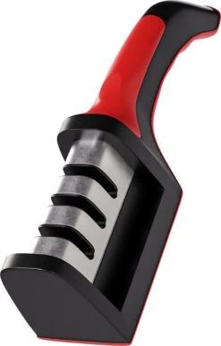 Deze messen of scharenslijper heeft 3 verschillende slijpsnede ’s om te zorgen dat het mes weer vlijmscherp is na gebruikt.