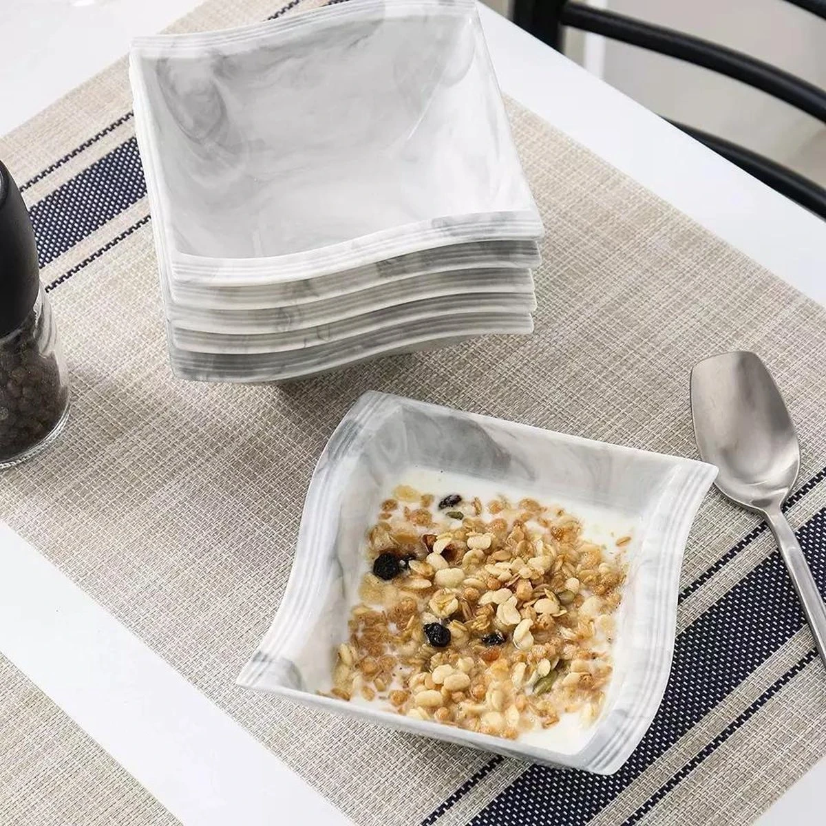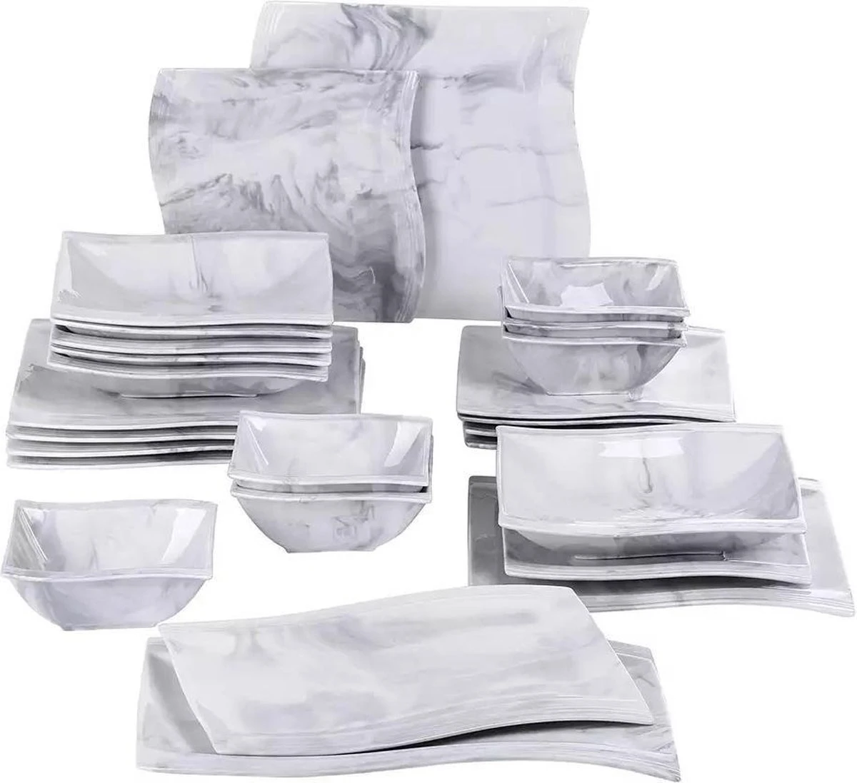 Met deze prachtige serviesset in in marmer tinten geef je een extra luxe uitstraling aan je dinertafel.