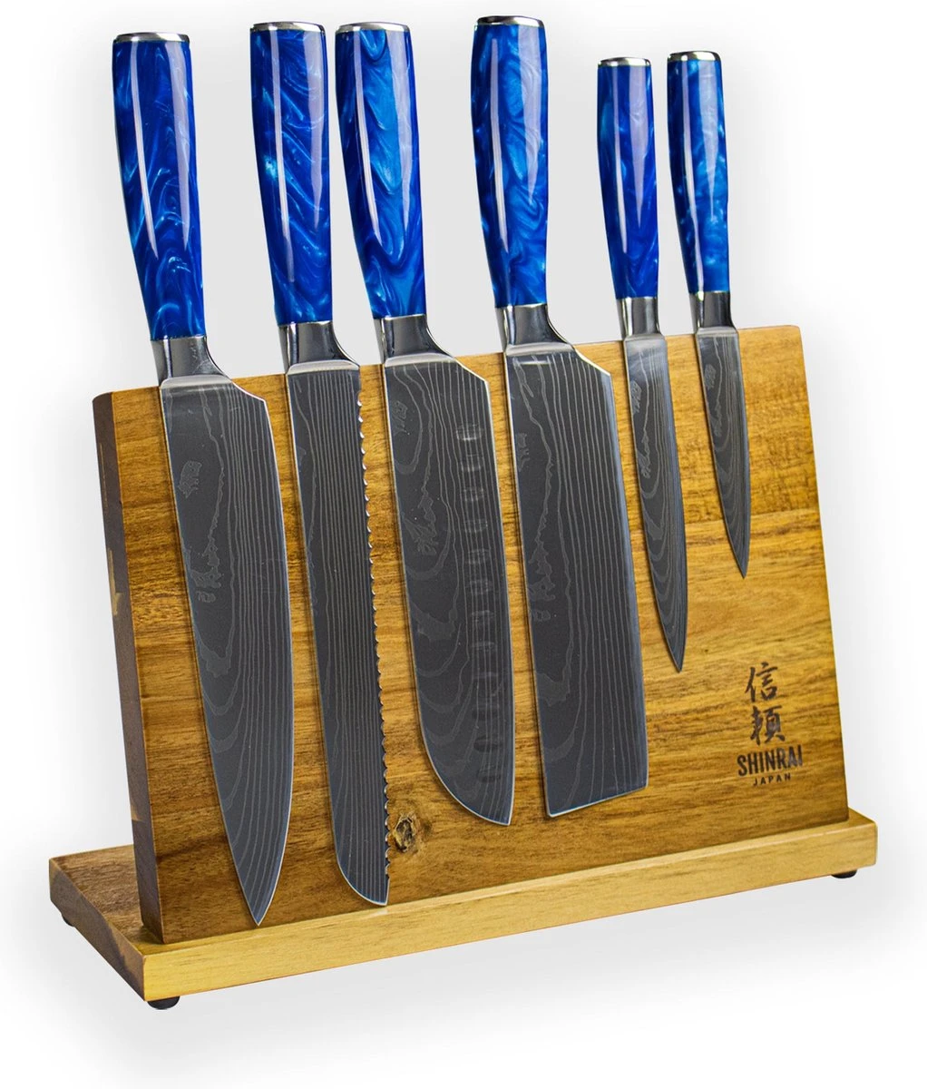 Deze combideal bevat een 6-delige messenset van de Epoxy Sapphire Series + een magnetische messenblok. Deze combinatie is een echte eyecatcher in de keuken en zorgt ervoor dat jouw nieuwe favoriete messen op een stijlvolle manier opgeborgen zijn.