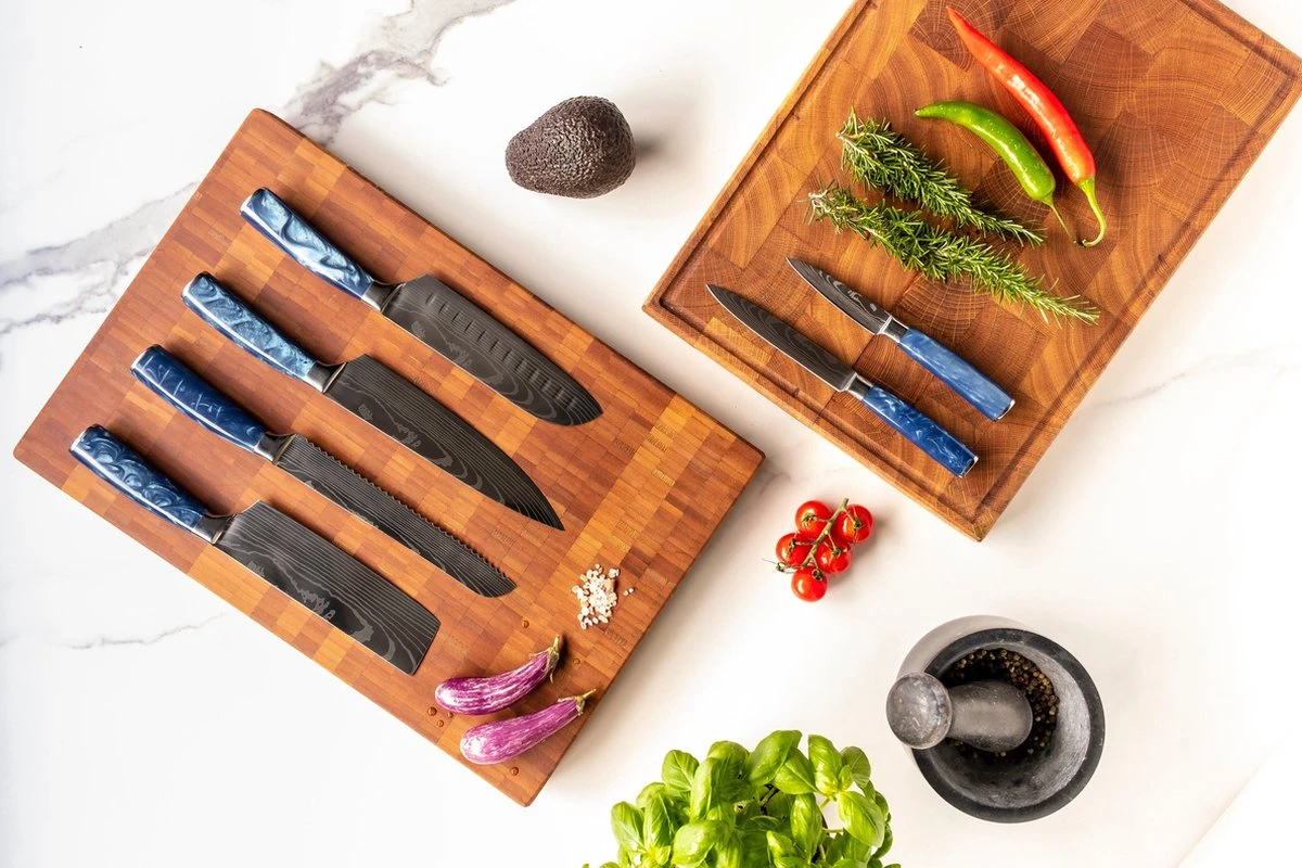 1x Epoxy Sapphire Damascus Print Series – 6-delige messenset