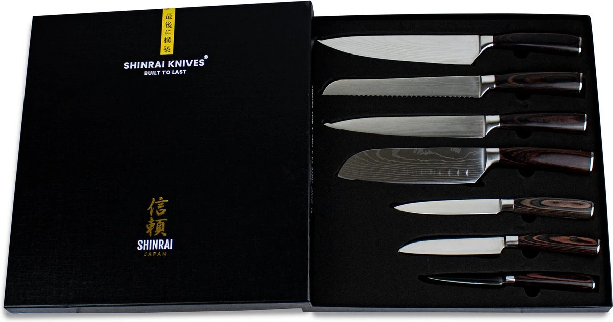 De messen van Shinrai Japan zijn uniek aangezien het grootste deel met de hand is gemaakt. Gesmeed uit Duits High Carbon staal, waardoor de messen hard en zeer scherp zijn. Een prachtige en duurzame messenset die niet kan ontbreken in jouw keuken.
