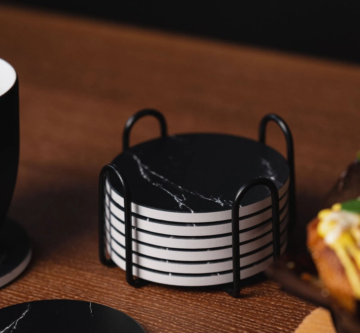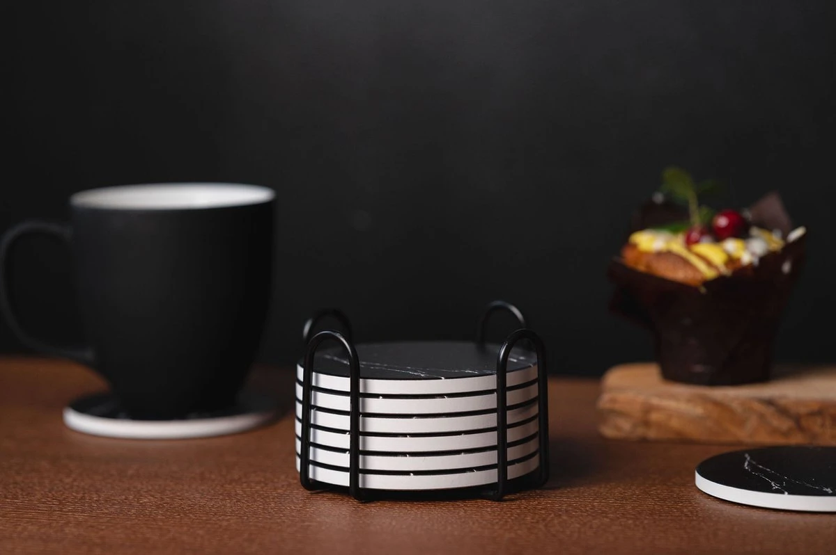 Op zoek naar luxe onderzetters voor op je salon-, keuken- of bureautafel? Met deze moderne set van 6 keramische onderzetters met houder van Sincer heb je geen last meer van waterkringen en maak je jouw woning helemaal compleet.