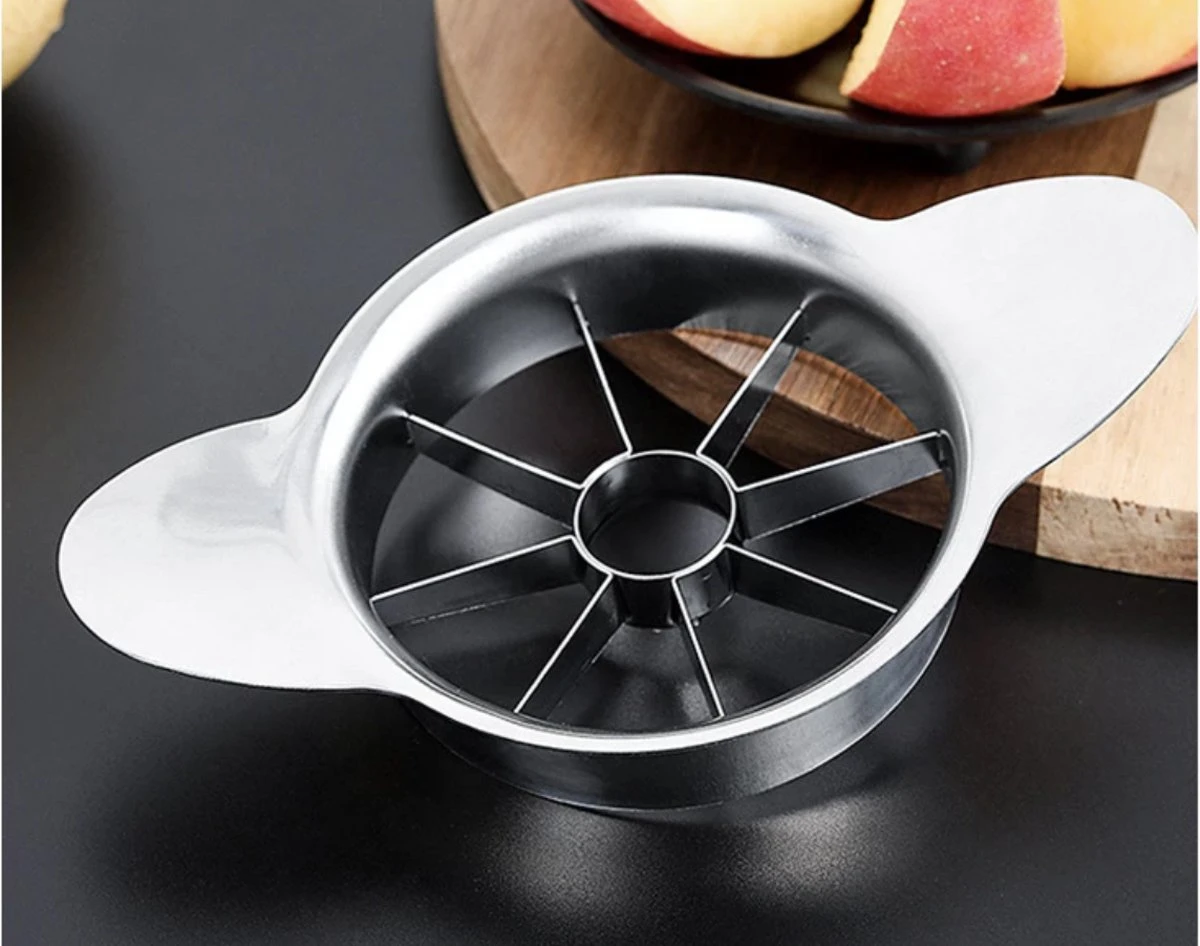 Met deze appelsnijder snijd je in een handomdraai een appel in mooie, gelijke stukjes. Het klokhuis wordt tegelijkertijd verwijderd. Een handig keukenhulpje voor wie snel een gezonde snack bij de hand wil hebben