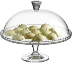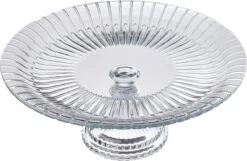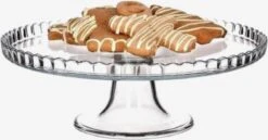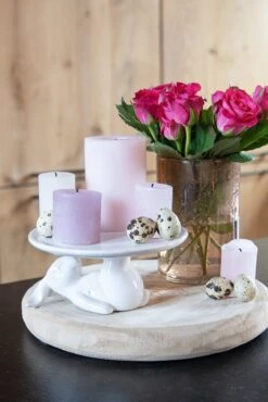 Clayre & Eef Taartplateau Op Voet Ø 17×8 Cm Wit Keramiek Rond Haas Etagère Taartschaal Serveerschaal