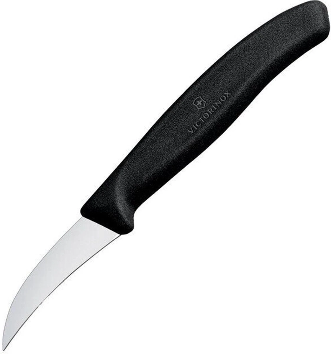 Een schilmesje is zowat het belangrijkste keukengerei omdat het klein en scherp genoeg is om delicaat werk te doen dat geen ander mes kan. Dit gebogen schilmesje uit de Victorinox Classic serie is extreem scherp en ligt uitstekend in de hand.