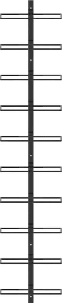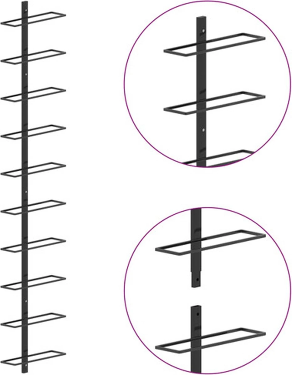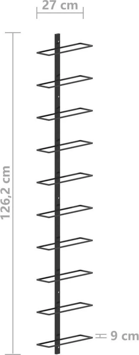 Dit wijnrek biedt plaats aan 10 flessen wijn. Het is gemaakt van gepoedercoat metaal, waardoor het extreem duurzaam en gemakkelijk te onderhouden is. Het is een ideaal cadeau om aan je vrienden en kennissen die van wijn houden te geven. Bovendien kan dit wijnrek met de meegeleverde montagematerialen eenvoudig aan de muur worden bevestigd.