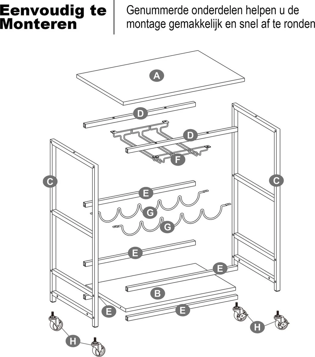 De geïllustreerde handleiding is eenvoudig te volgen en de onderdelen zijn duidelijk genummerd. Het rek is gemakkelijk te monteren met slechts één persoon en eenmaal opgebouwd is het zeer stabiel.