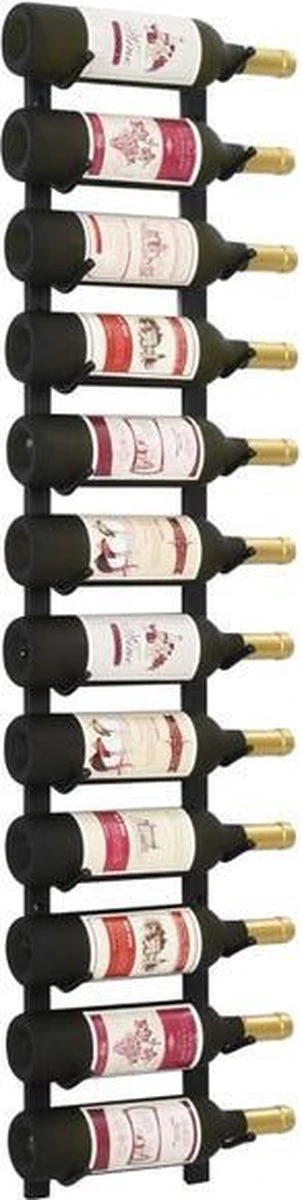 Dit wijnrek biedt plaats aan maximaal 12 wijnflessen. Heeft een stijlvoll ontwerp en voegt moderne klasse toe aan je woning of keuken. Het rek is ook een geweldig cadeau. Het is gemaakt van gepoedercoat ijzer en is daardoor erg duurzaam. Bovendien kan het eenvoudig aan de muur bevestigd worden dankzij de meegeleverde montagematerialen. Meerdere sets zijn te combineren en uit te breiden. Zo maak je eenvoudig een wand vol wijnflessen. De wijnflessen worden niet meegeleverd.